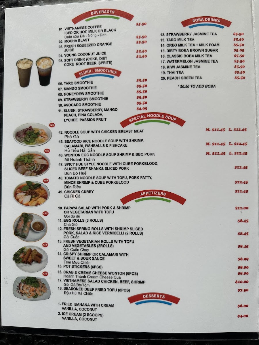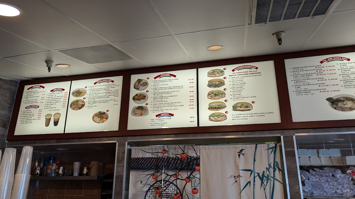 “ I come here for the amazing vietnamese sandwiches! Sorry, I was hungry and took a bite before the pic. Anyway, been doing take out for a while now and ate in for first time in a while. Their teams and boba shakes are good too. My daughter likes the spring rolls and pho. But the best part is the sandwich, the bread is always crunchy and soft, and the veggies full of flavor. Go now. ”